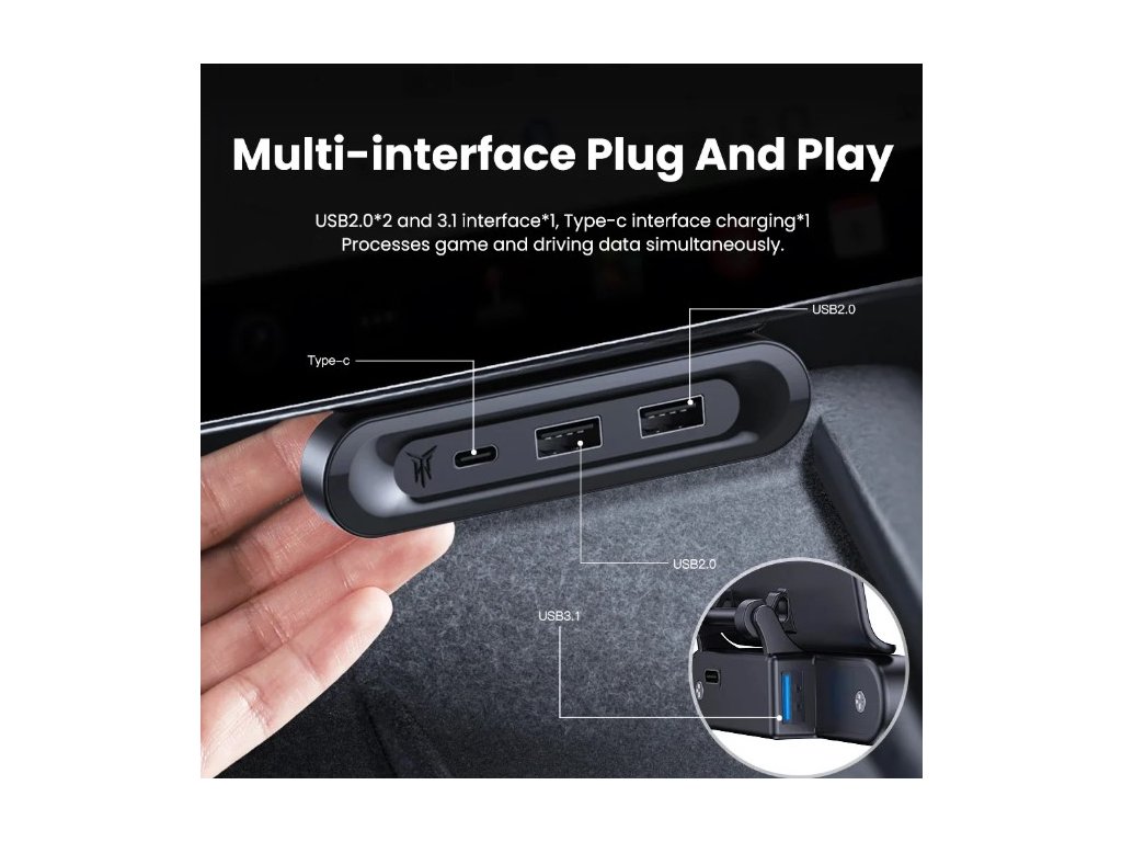 Rozšiřující dokovací stanice USB Elvix pro středový displej vozů Tesla Model 3/Y Vylepšete svůj vůz Tesla Model 3 nebo Model Y touto čtyřdílnou sadou držáků na nápoje, které se montují na dveře a jsou speciálně navrženy tak, aby perfektně pasovaly vedle loketních opěrek dveří. Tyto držáky jsou vyrobeny z vysoce kvalitního ABS plastu s elegantním povrchem ve stylu uhlíkových vláken a nabízejí jak funkčnost, tak estetiku. Instalace je rychlá a snadná pomocí přiložených nástrojů a držáků – nejsou nutné žádné úpravy. Každý držák na nápoje je robustní, odolný vůči teplu a dostatečně velký, aby se do něj vešly většina lahví, plechovek nebo kávových šálků. Ať už cestujete do práce nebo na výlet, tyto držáky vám poskytnou pohodlný přístup k nápojům nebo drobným předmětům, aniž by zaplňovaly palubní desku. Specifikace: Kompatibilita: Tesla Model 3 a Model Y Materiál: ABS + hliníková slitina Porty: 1× USB typu C (nabíjení), 1× USB 3.1, 2× USB 2.0 Barva: černá Balení obsahuje: 1 х USB rozšiřující dok Elvix pro Tesla Model 3/Y středový displej Není spojeno se společností Tesla, Inc. Zobrazený produkt není oficiálním zbožím Tesla a je použit pouze pro identifikační účely.