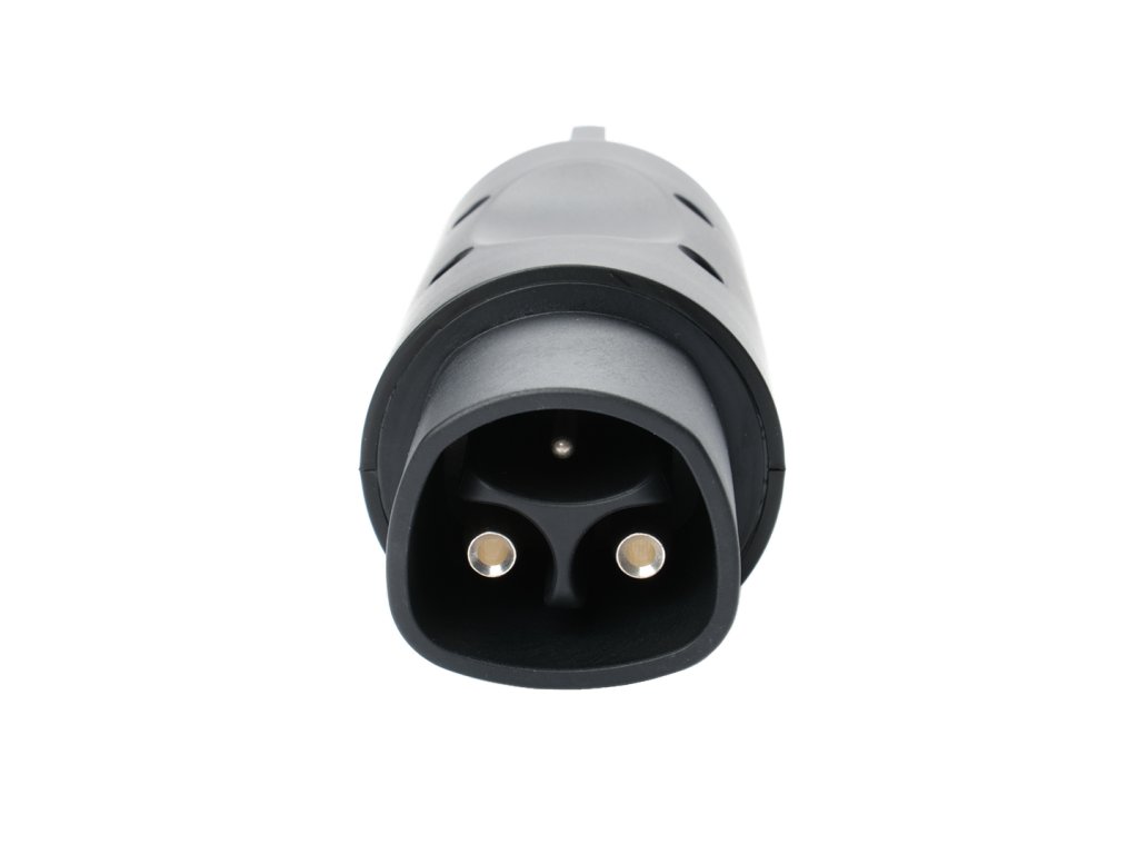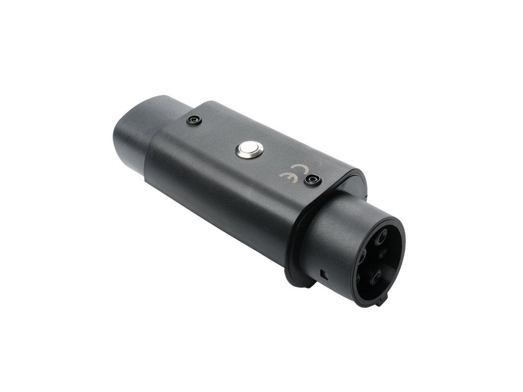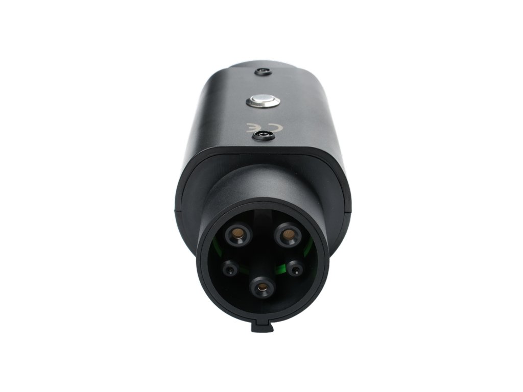 Konektor Tesla k typu 1 (US). Je vyroben z vysoce kvalitního ohnivzdorného plastu a zajišťuje odolnost i bezpečnost. Díky kompaktnímu, ergonomickému designu je uživatelsky přívětivý a snadno se skladuje nebo přepravuje. Součástí adaptéru je také tlačítko zámku, které pevně zajišťuje připojení, zabraňuje náhodnému odpojení a zajišťuje bezpečné nabíjení.