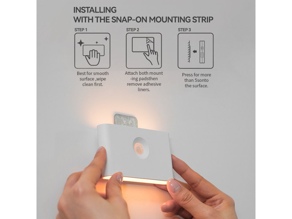 4. Magnetická montáž, vestavěná lepicí magnetická destička, přilepit kdekoli