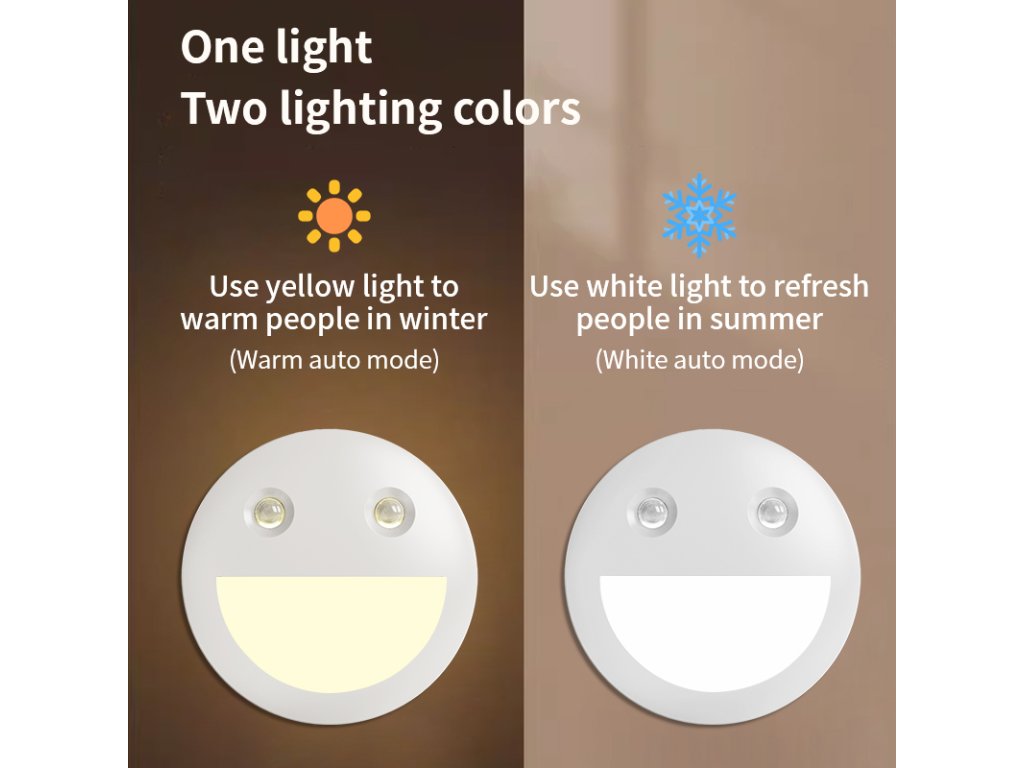- 2 BAREVNÉ REŽIMY: Toto noční světlo má dvě barvy světla, bílé světlo v létě pro osvěžení (automatický režim bílého světla); žluté světlo v zimě pro zahřátí (automatický režim teplého světla).