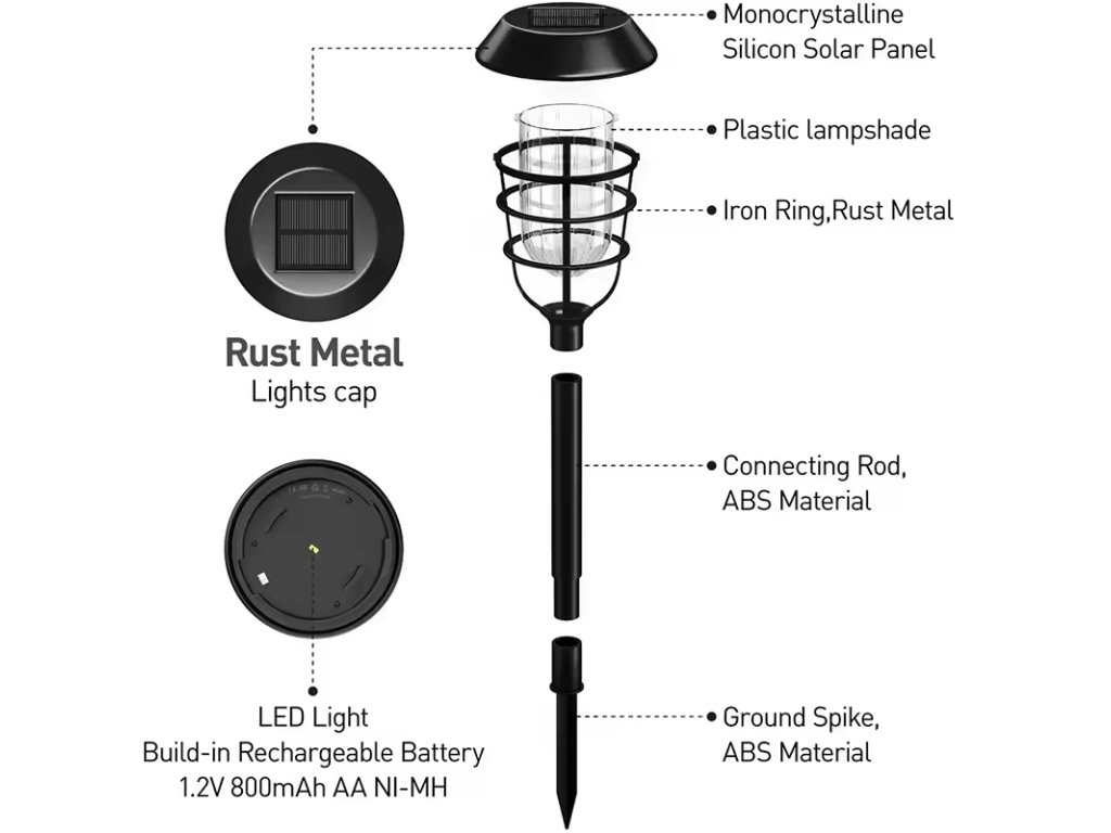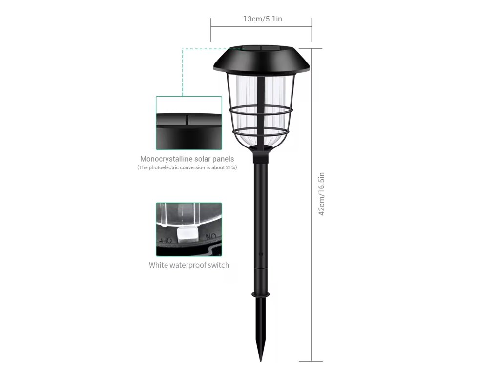 - Rozměry: Každé světlo má rozměry 13cm (průměr) x 41cm (výška), což poskytuje ideální velikost pro venkovní instalaci.