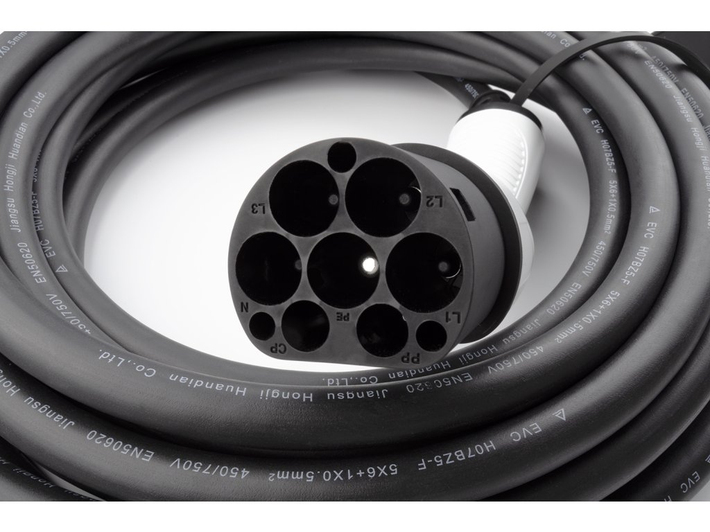 Nabíjecí kabel Elvix 5006 T2-T2 22KW 5M Bílá/černá Tento vysoce kvalitní 32A 22KW nabíjecí kabel pro elektromobily typu 2 je navržen pro efektivní a bezpečné nabíjení elektromobilů. Je vybaven odolným pláštěm z PC s vlastnostmi zpomalujícími vzplanutí, který nabízí maximální ochranu během používání. Vodotěsnost IP66 zajišťuje spolehlivost za všech povětrnostních podmínek, zatímco životnost bez zátěže při zapojení/vypojení více než 10 000 cyklů zaručuje dlouhou životnost. 8µm postříbřené kolíky nabíjecí pistole a kabel TPU s bezkyslíkatými dráty z čisté mědi poskytují vynikající vodivost a stabilitu a zajišťují bezpečné a účinné nabíjení. Ergonomický a integrovaný design s úhlovým horizontálním ohybem umožňuje pohodlné zapojování a odpojování v souladu s přirozenými návyky při použití manuální síly. Klíčové vlastnosti: - Nehořlavý plášť z PC pro větší bezpečnost - Vodotěsný a stabilní kabel z TPU s čistě měděným vodičem - Ergonomický design pro snadné použití - Robustní a spolehlivý pro široké použití Specifikace: Maximální výkon: 22 kW Výstupní proud: 32 A Typ konektoru: Typ 2 (T2) Délka kabelu: 5 m Materiál: PC plášť, kabel TPU Stupeň vodotěsnosti: IP66 Odolnost: Bez zátěže > 10 000krát. Materiál kolíku: 8µm stříbrný kolík nabíjecí pistole Balení obsahuje: 1x nabíjecí kabel Elvix 5006 T2-T2 22KW 5M bílý/černý