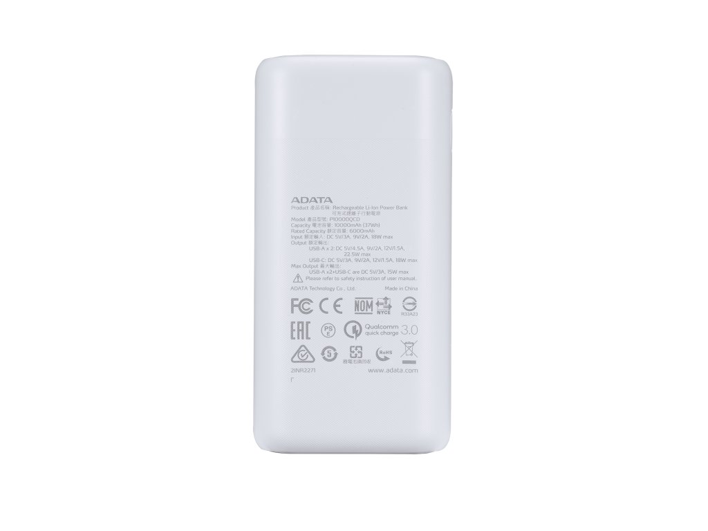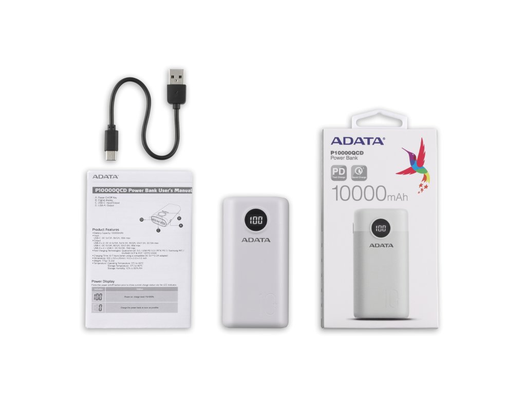 Chcete strávit méně času nabíjením a více využívat powerbanku ADATA P10000QCD na cestách! Kompaktní model P10000QCD vám šetří čas pro důležitější aktivity. Je vybaven velkou baterií 10 000 mAh, třemi porty USB a podporuje širokou škálu technologií rychlého nabíjení.