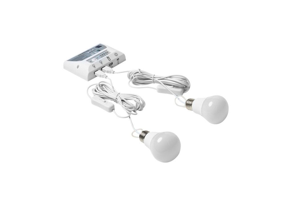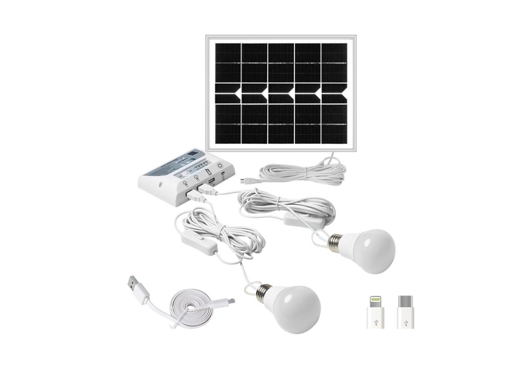 Je to dokonalá sada gadgetů pro venkovní přespání, ideální pro ty, kteří vedou aktivní životní styl. Solární panel je vyroben s nejnovější technologií a může dobíjet baterii i za oblačného počasí. Baterie disponuje několika USB porty, které mohou dobíjet mobilní telefon, tablet, svítilnu, power bank nebo jakékoliv jiné zařízení. Sada zahrnuje dvě LED lampy s dlouhými kabely, které jsou také připojeny k baterii a mohou osvětlit váš stan nebo prostor kolem ohně.
