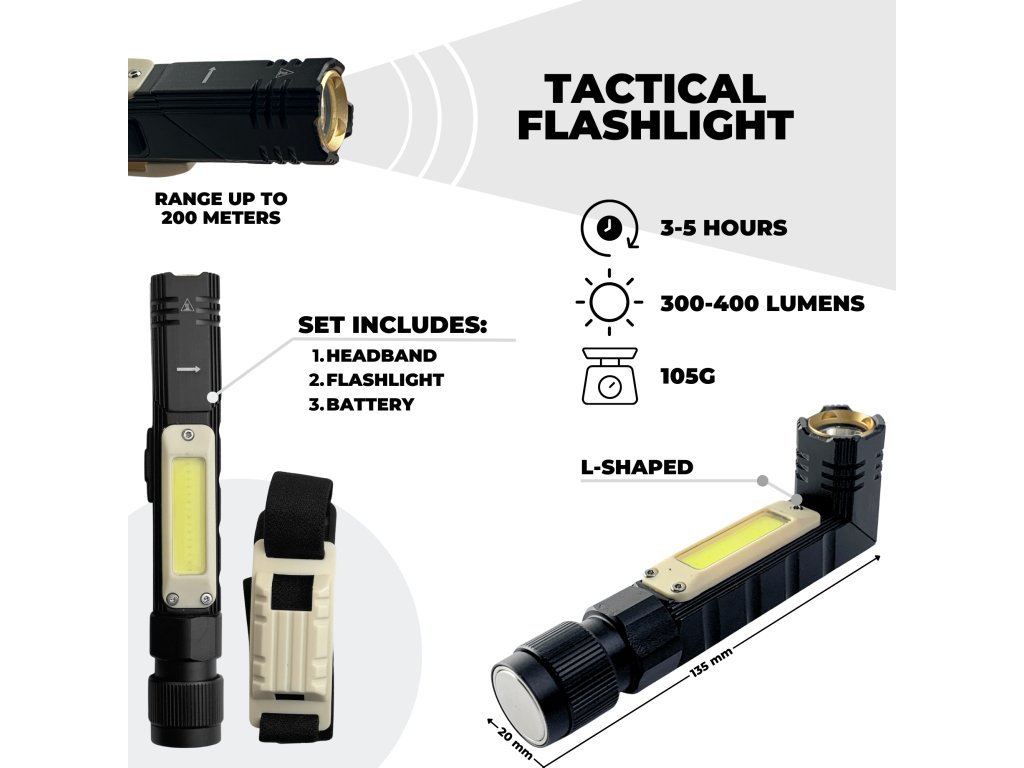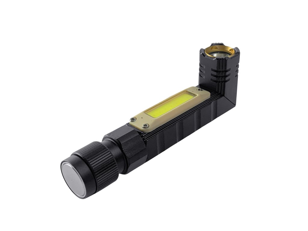 L-tvarová taktická baterka FDL-122 Tento multifunkčný prístroj úspešne kombinuje výhody baterky v tvare L, kempingovej lampy a svietidla. Model je veľmi ľahký a kompaktný.