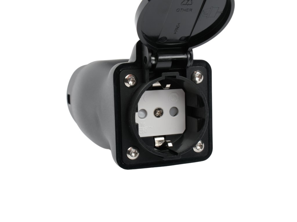 Nabíjací kôpkový adaptér Elvix Black T2-Socket Špecifikácia: Menovité napätie: 250V Menovitý prúd: 16A Prevádzková teplota: -30 ℃ až 50 ℃ Relatívna vlhkosť: 95% (prie 40 ℃) Materiál puzdra aplikácia medi, postriebrený povrch + horná časť z termoplastu Tesniaci prvok: Gumový elastomér Veľkosť výrobku: 13 x 7 x 5,8 cm Plug: T2 Typ zásuvky: typ EU Balenie obsahuje: 1x adaptér 1x sáčok
